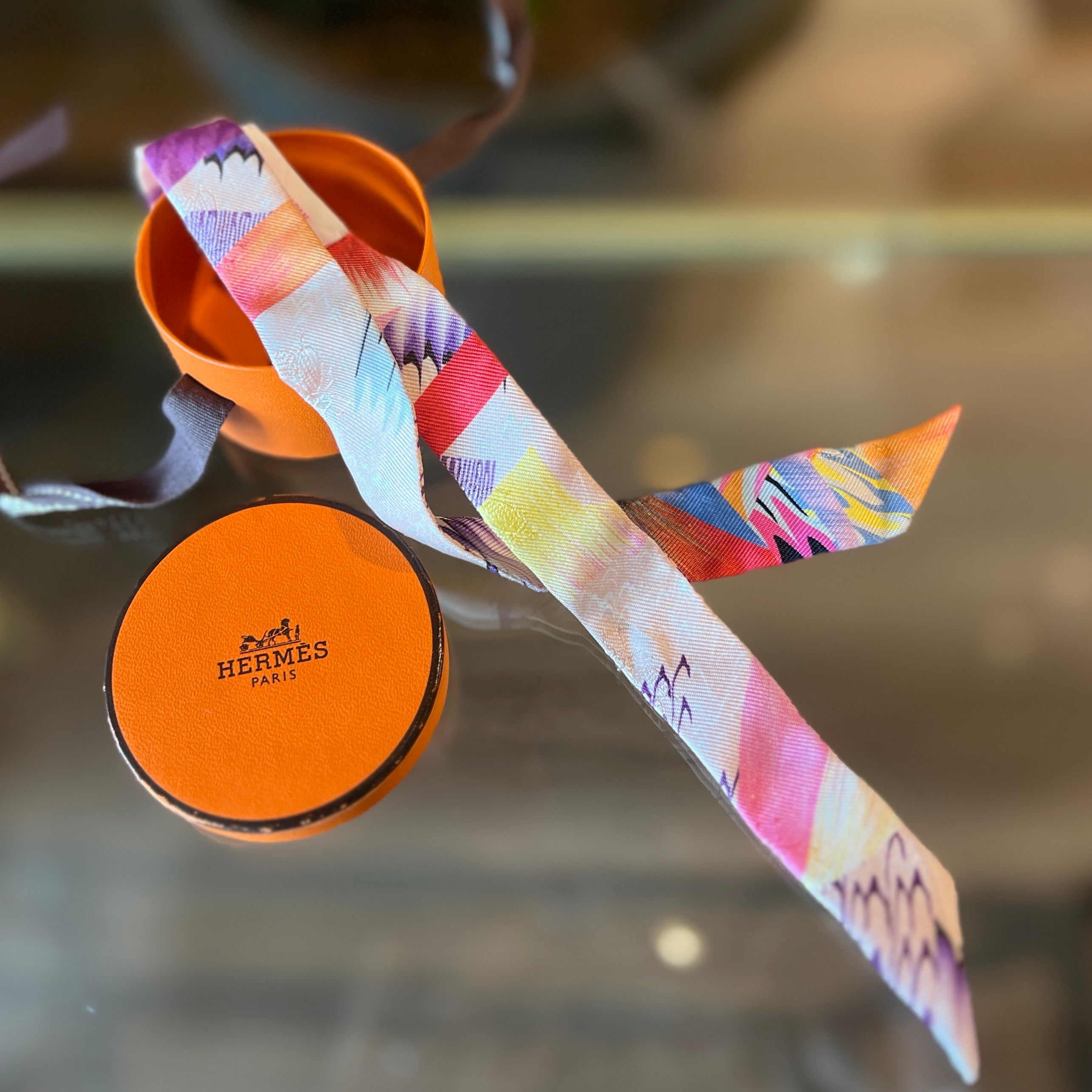 HERMES Marble Doll Rose Multicolore Silk Twilly