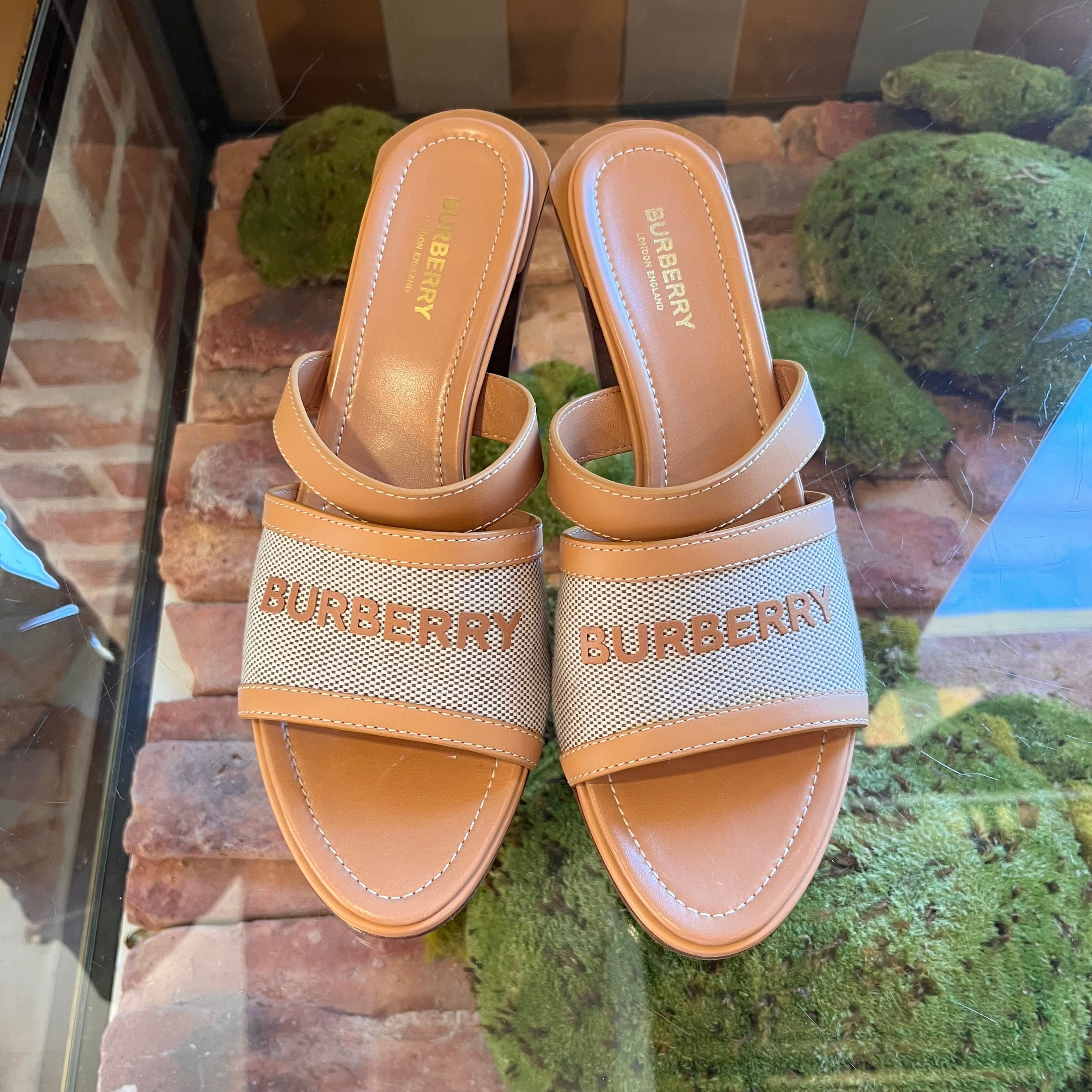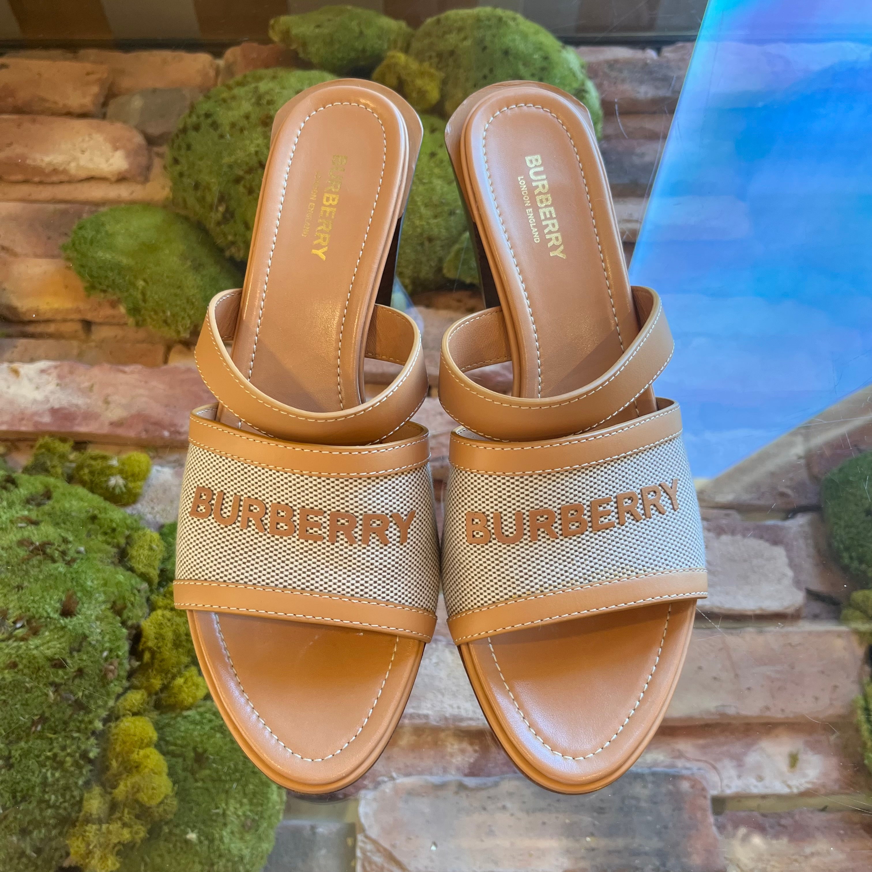 BURBERRY Brown Logo Sandals size 40 1/2 ( US 10.5)