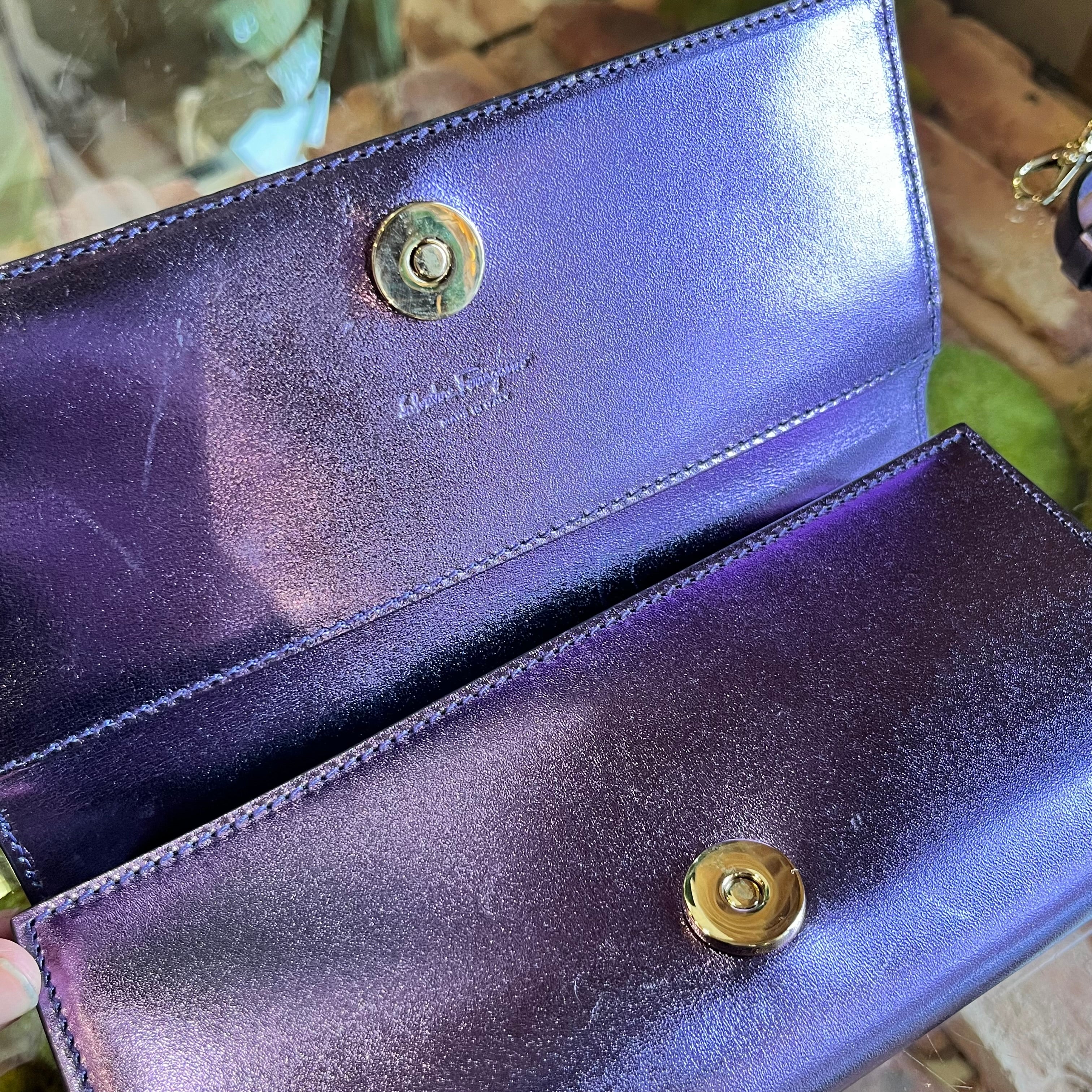 FERRAGAMO Purple Top Handle Wallet On Chain