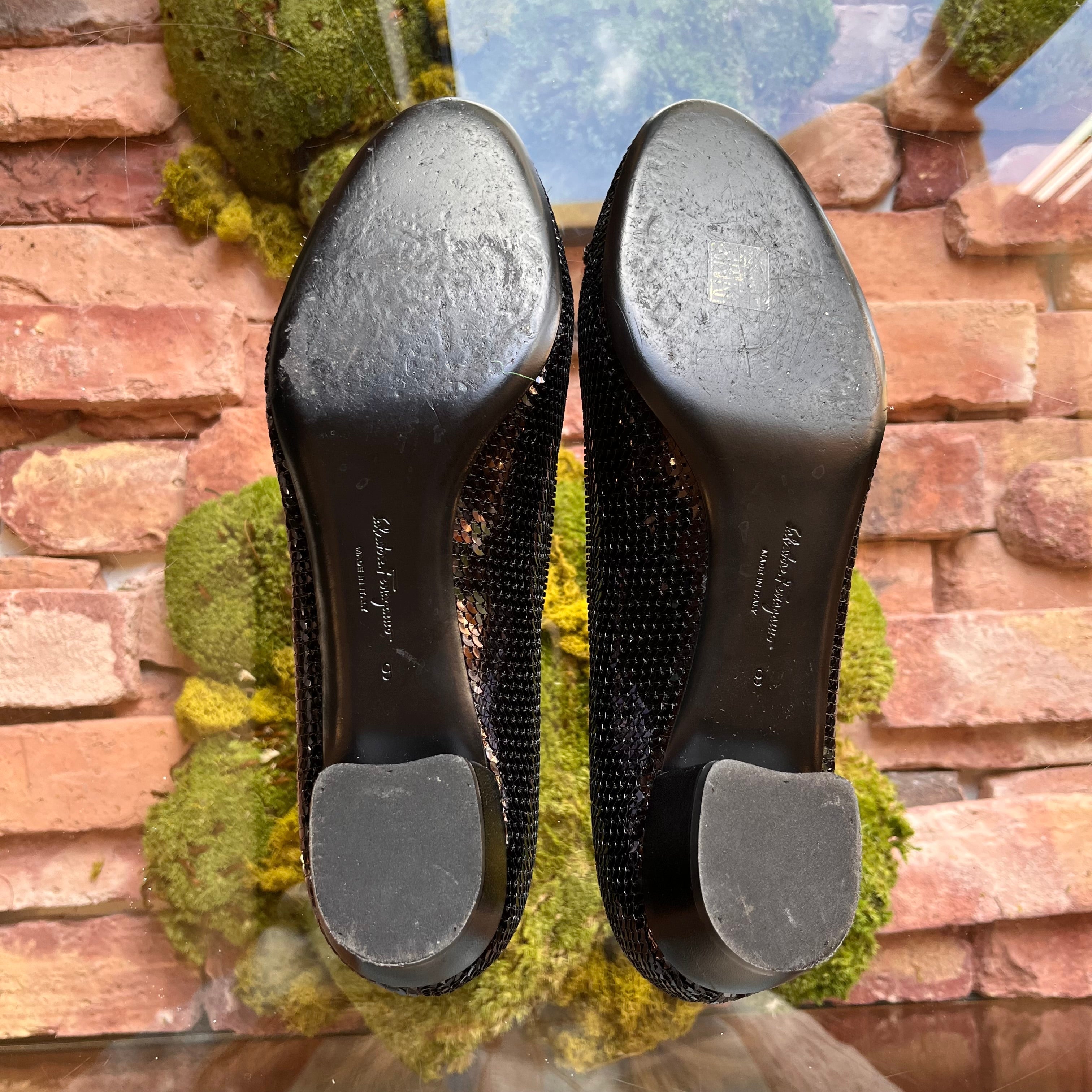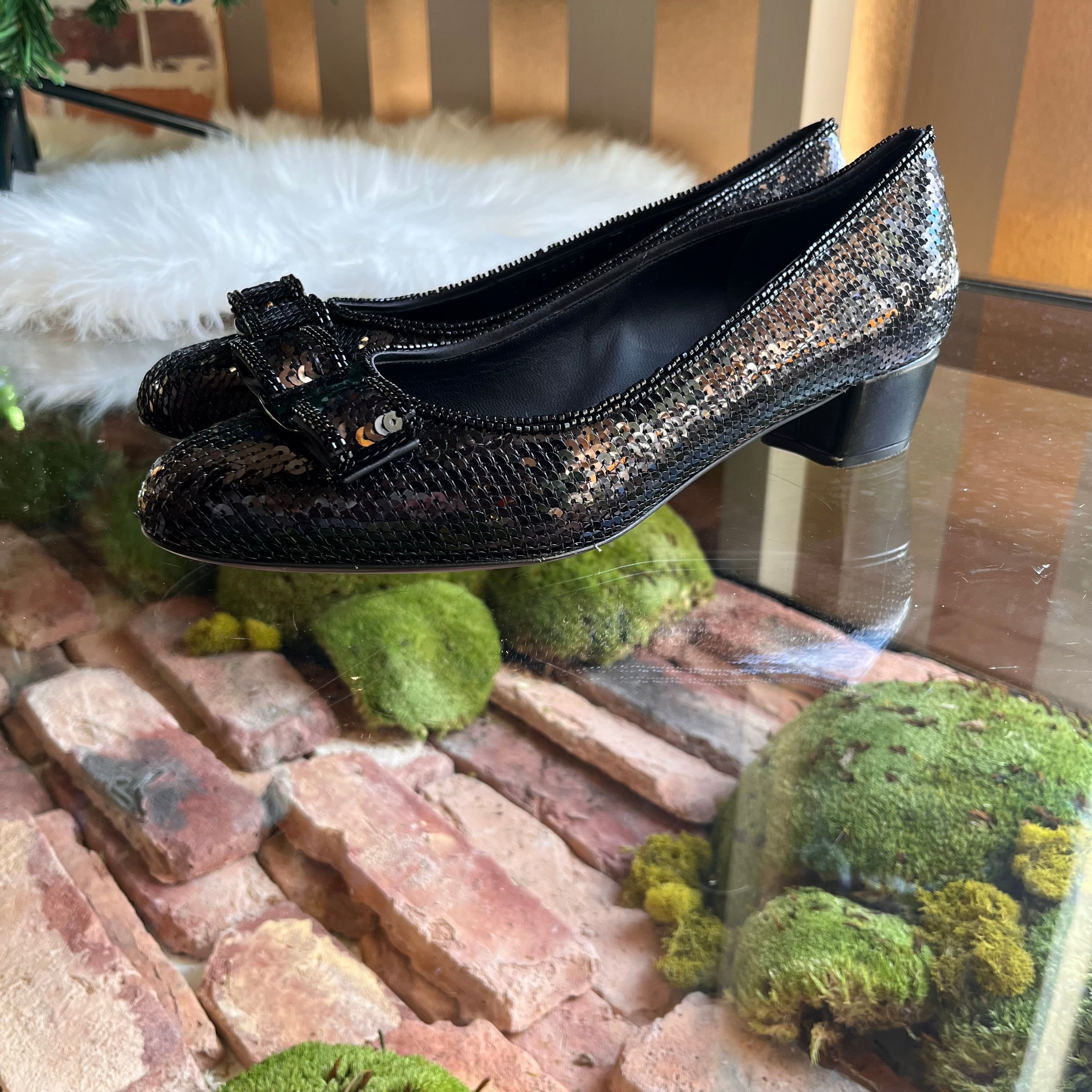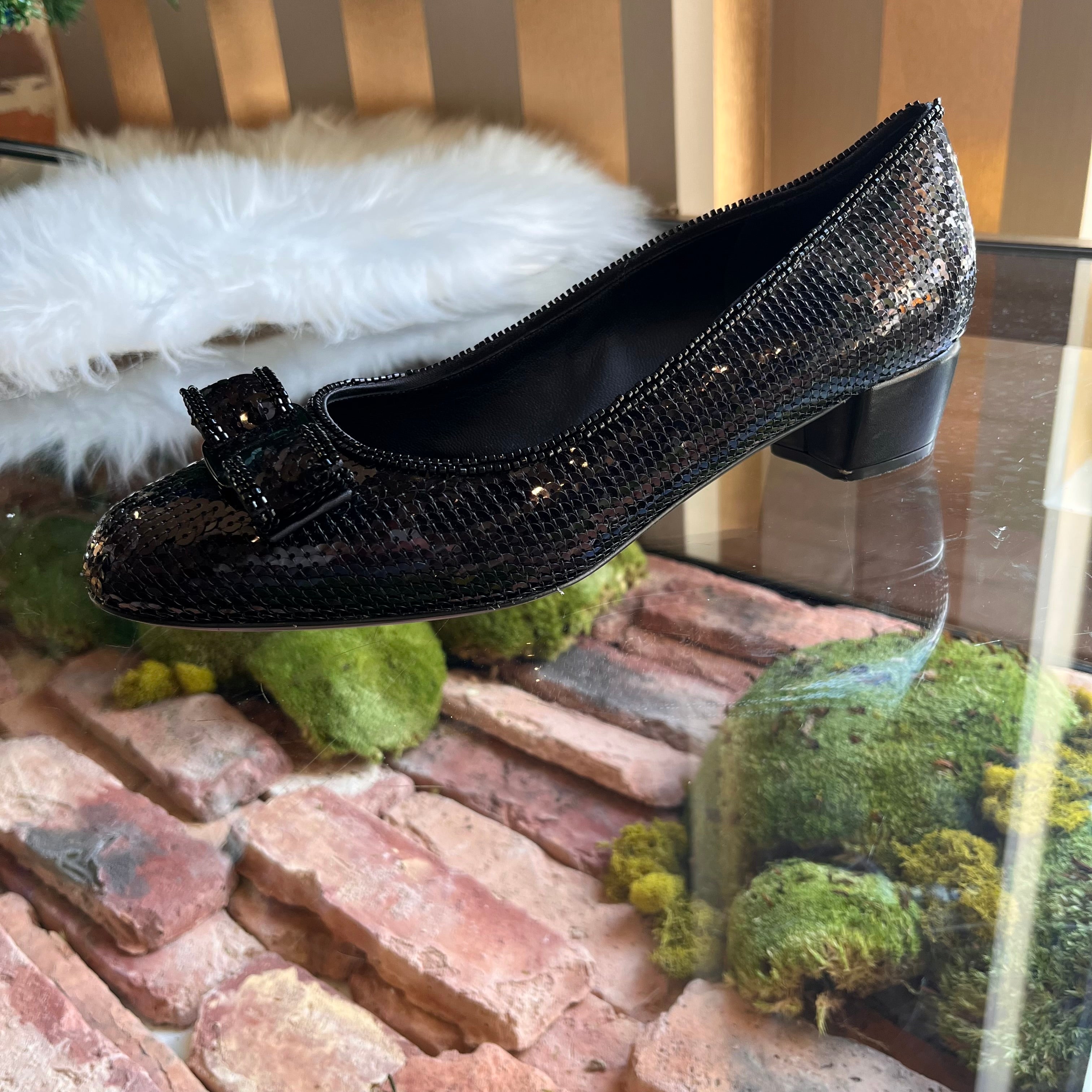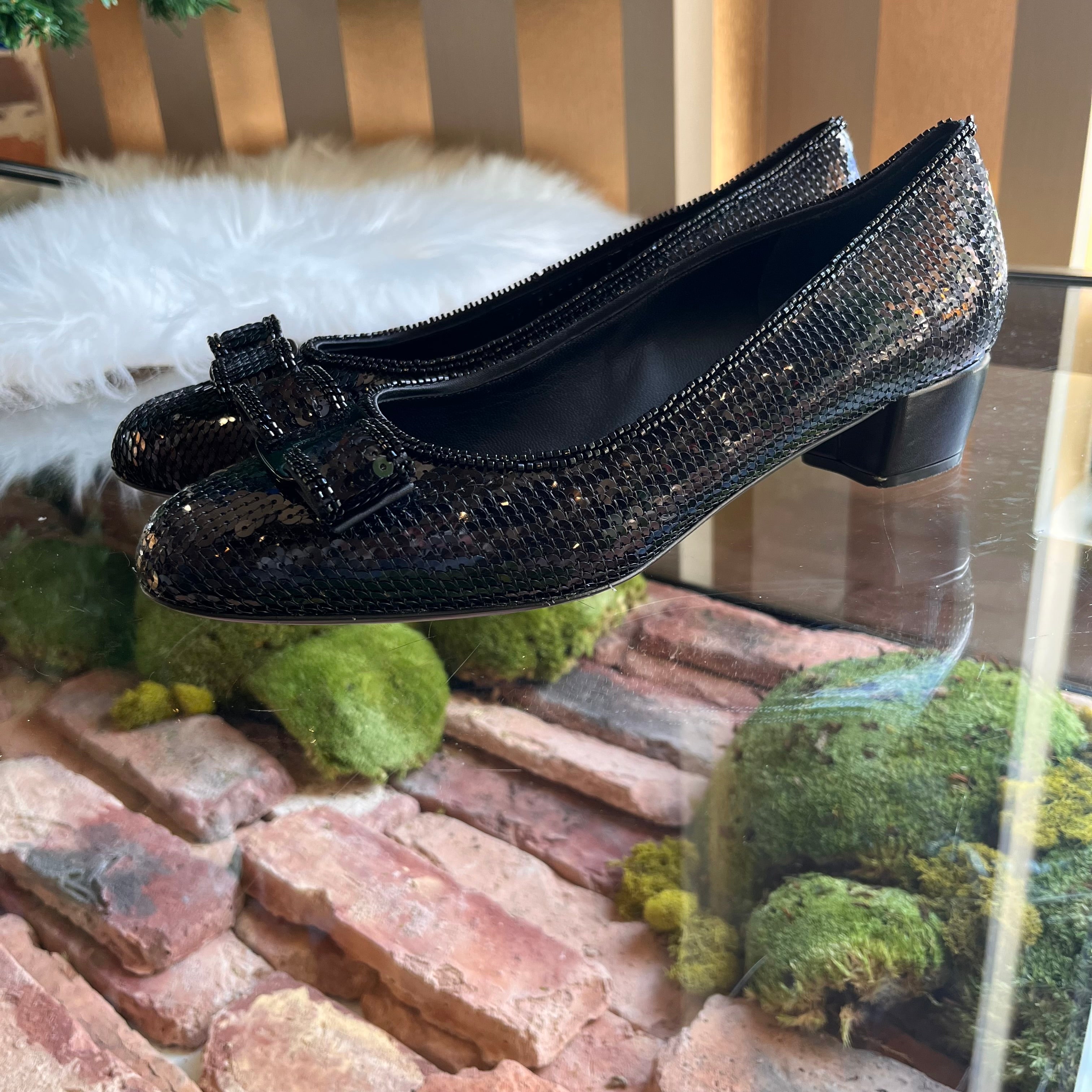 FERRAGAMO Sequin Beaded Vara Bow Pumps size 39 (US 9)