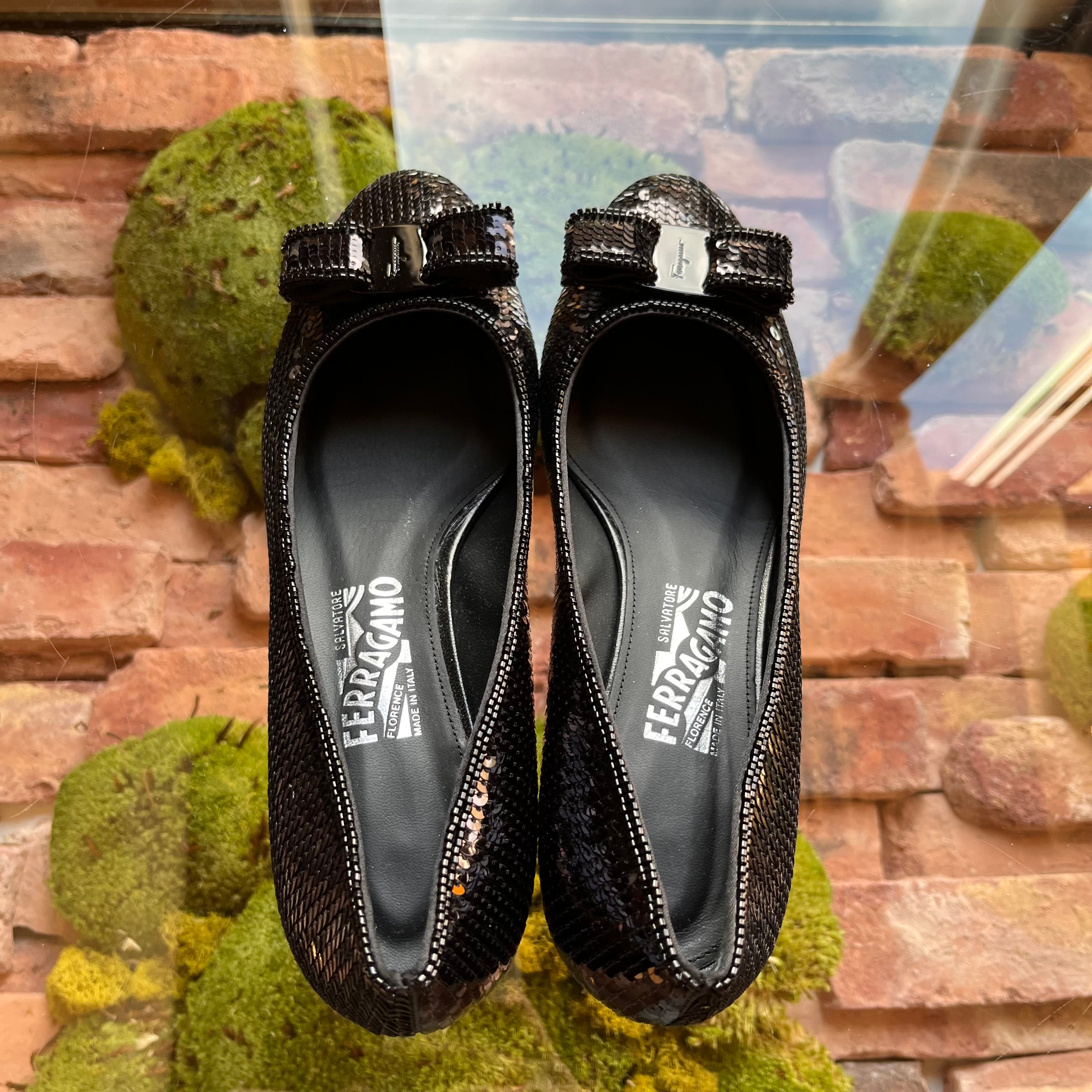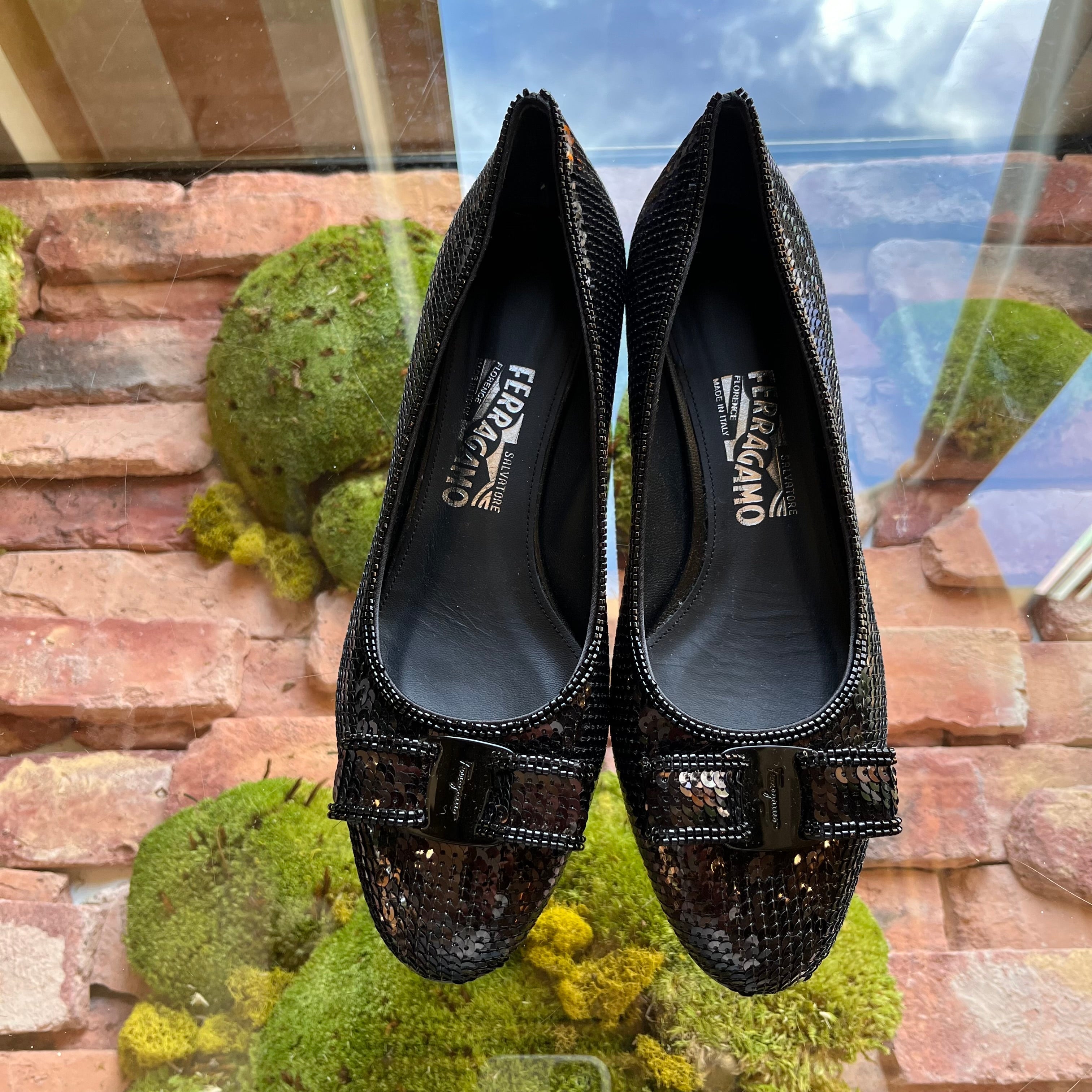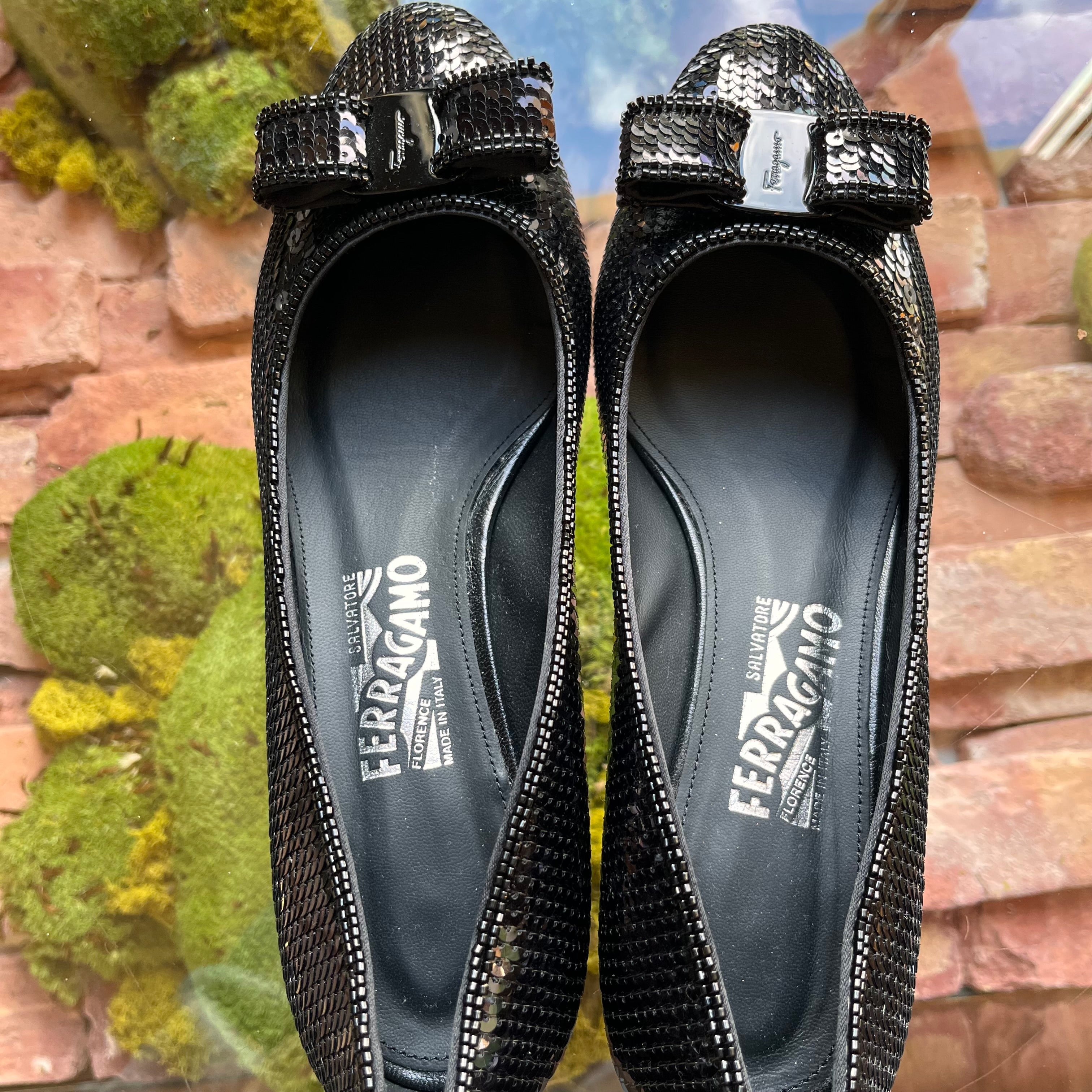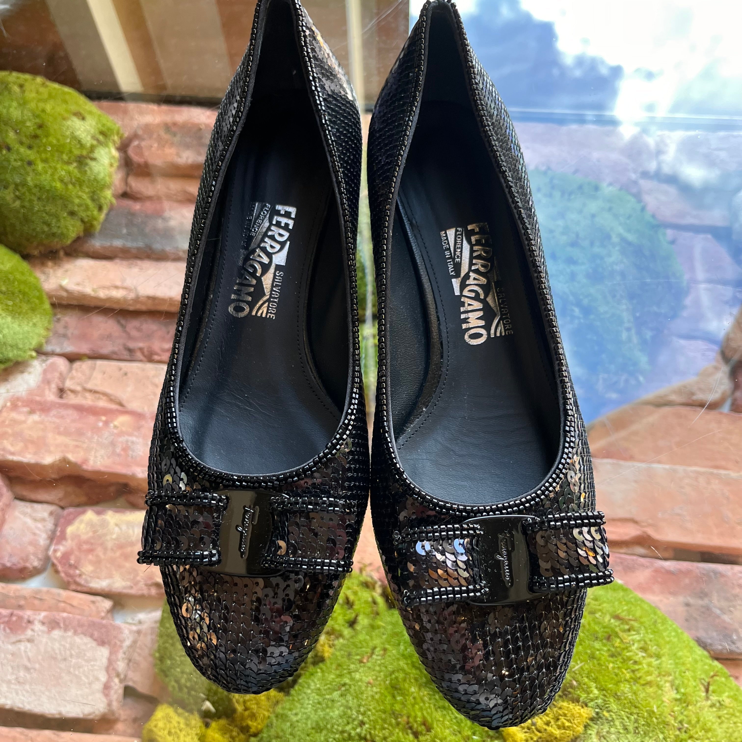 FERRAGAMO Sequin Beaded Vara Bow Pumps size 39 (US 9)