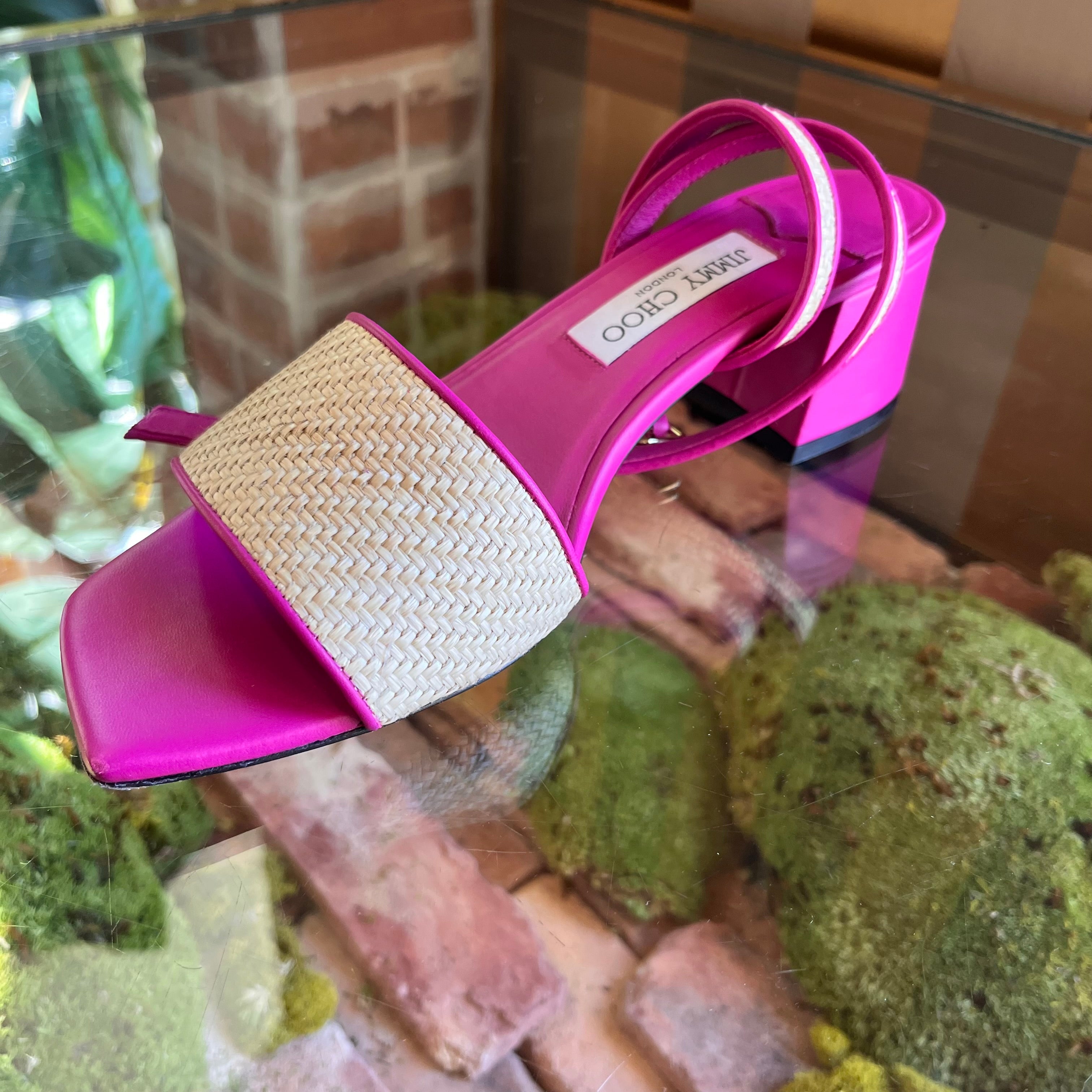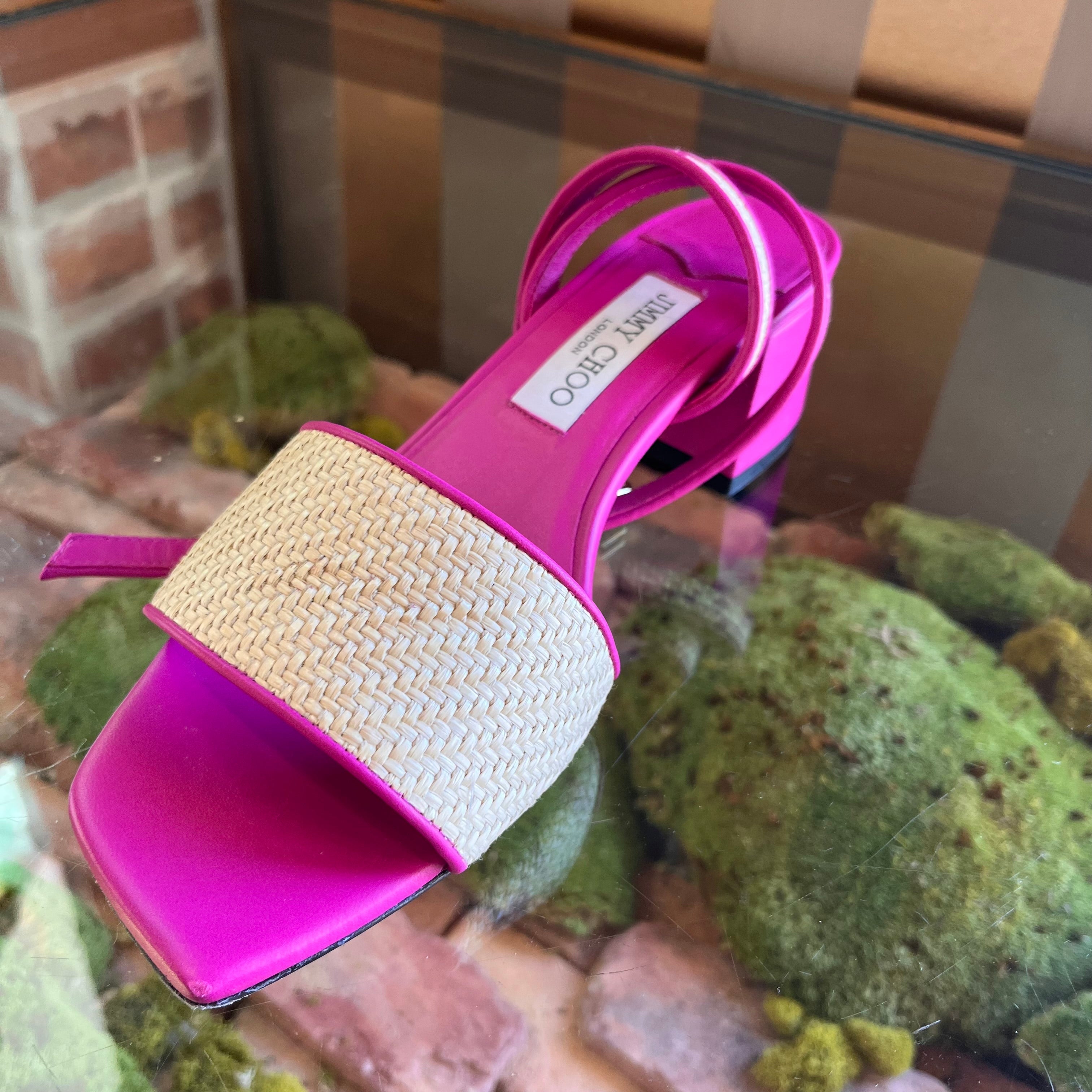 JIMMY CHOO Pink Raffia Sandals size 39 ( US 9)