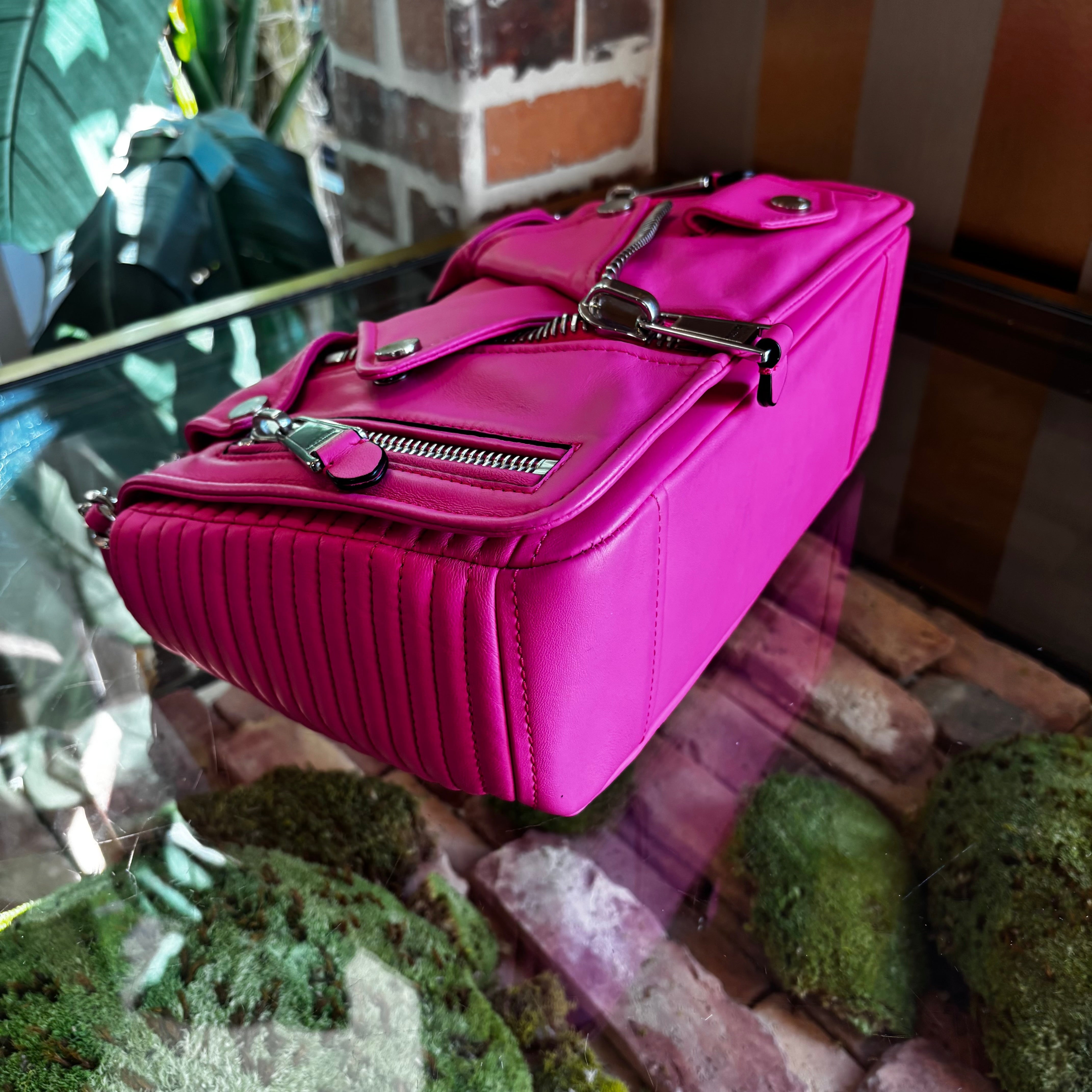 MOSCHINO Biker Hot Pink Shoulder Bag