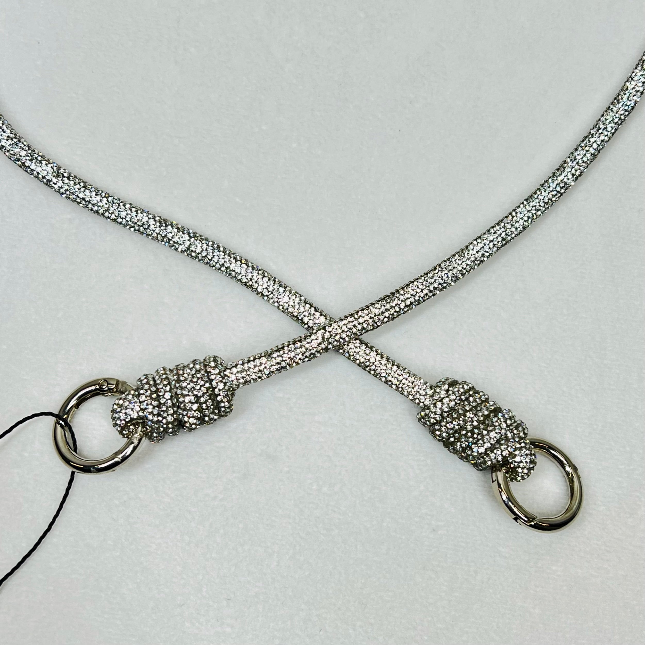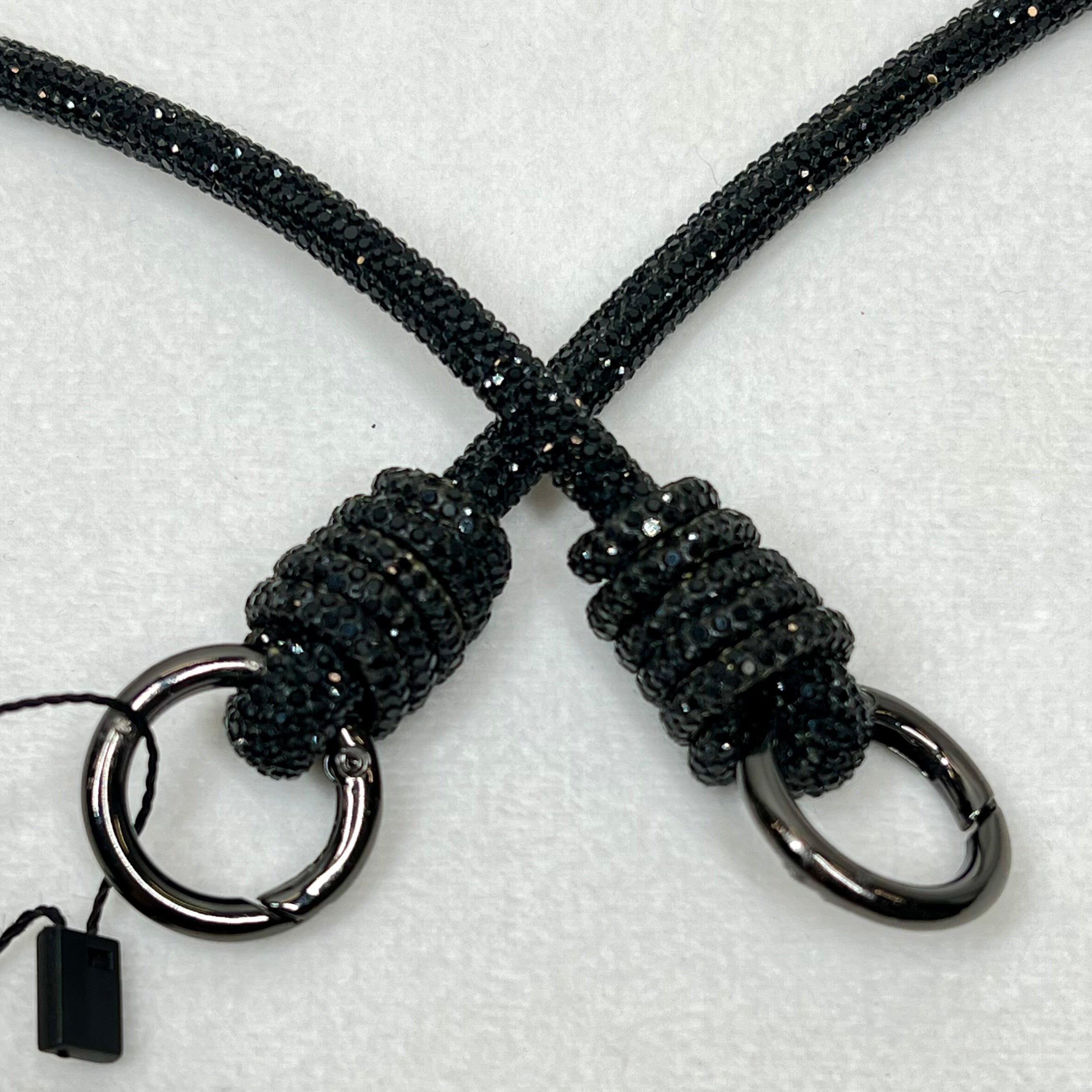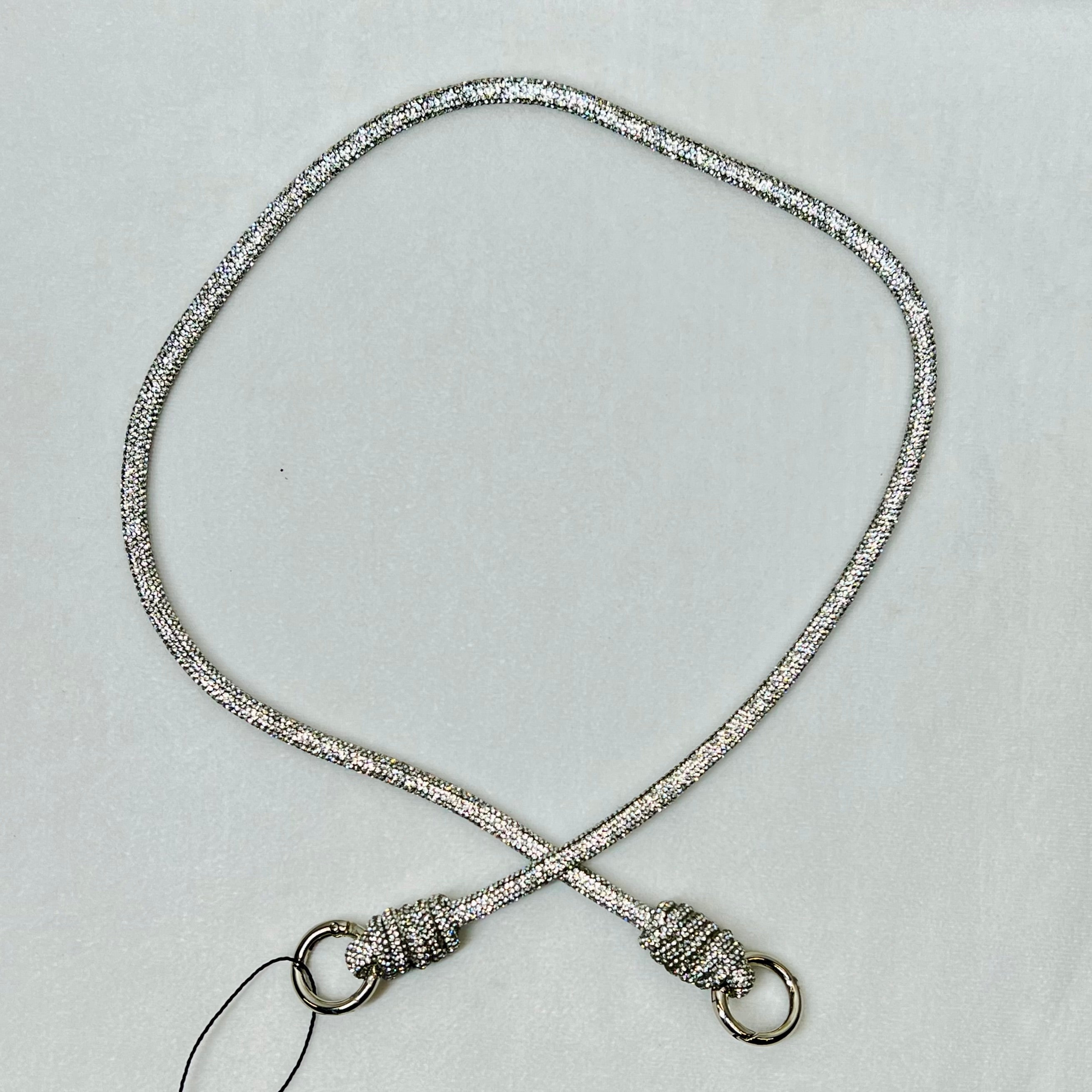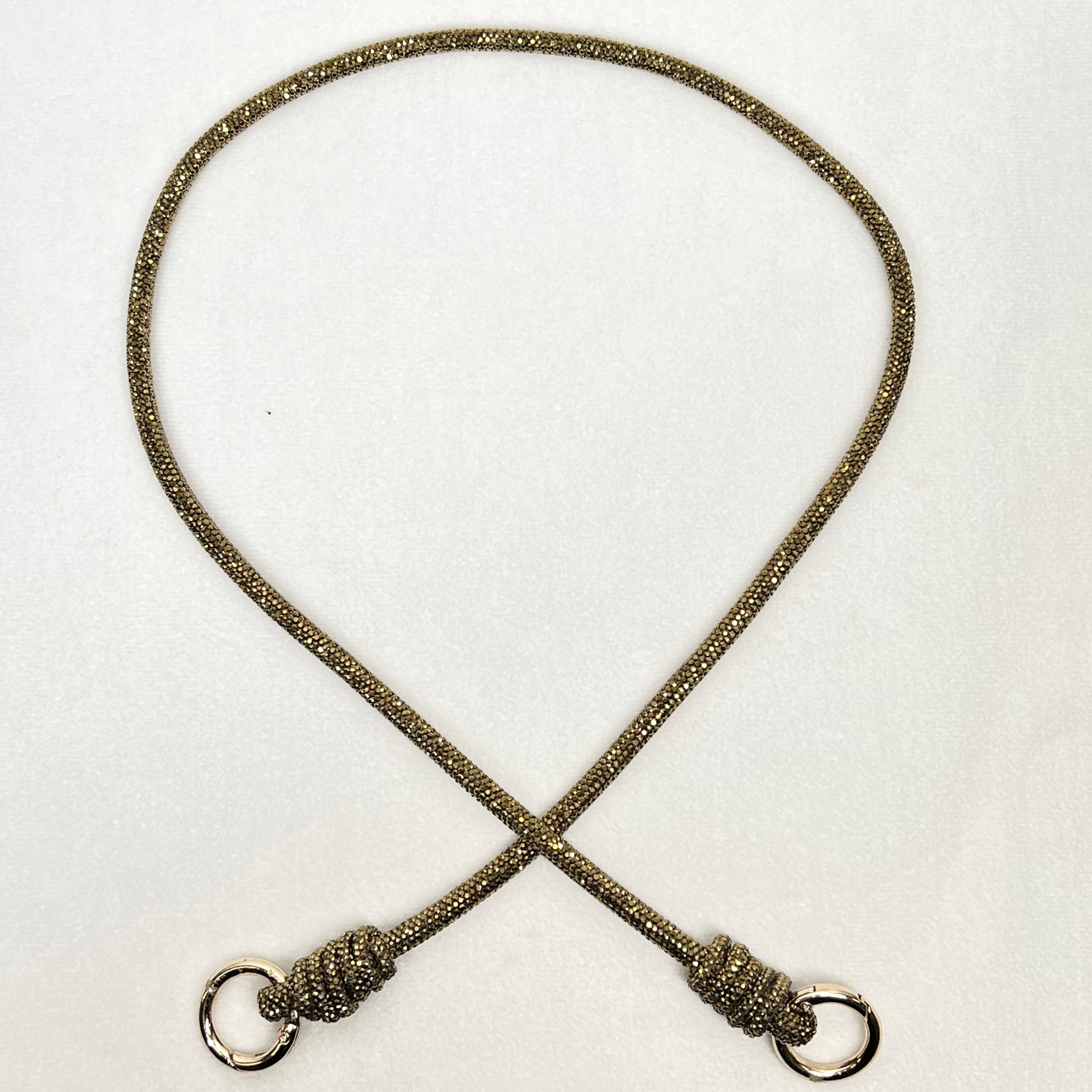 The Rocknot Spiral 30" Strap is a chic and unique accessory with a stylish twist! Available in silver, black, and antique gold, this strap has a striking cording design adorned with shimmering crystal embellishments. Its eye-catching spiral detail makes it perfect for adding a touch of edgy elegance to your favorite bag or outfit!
