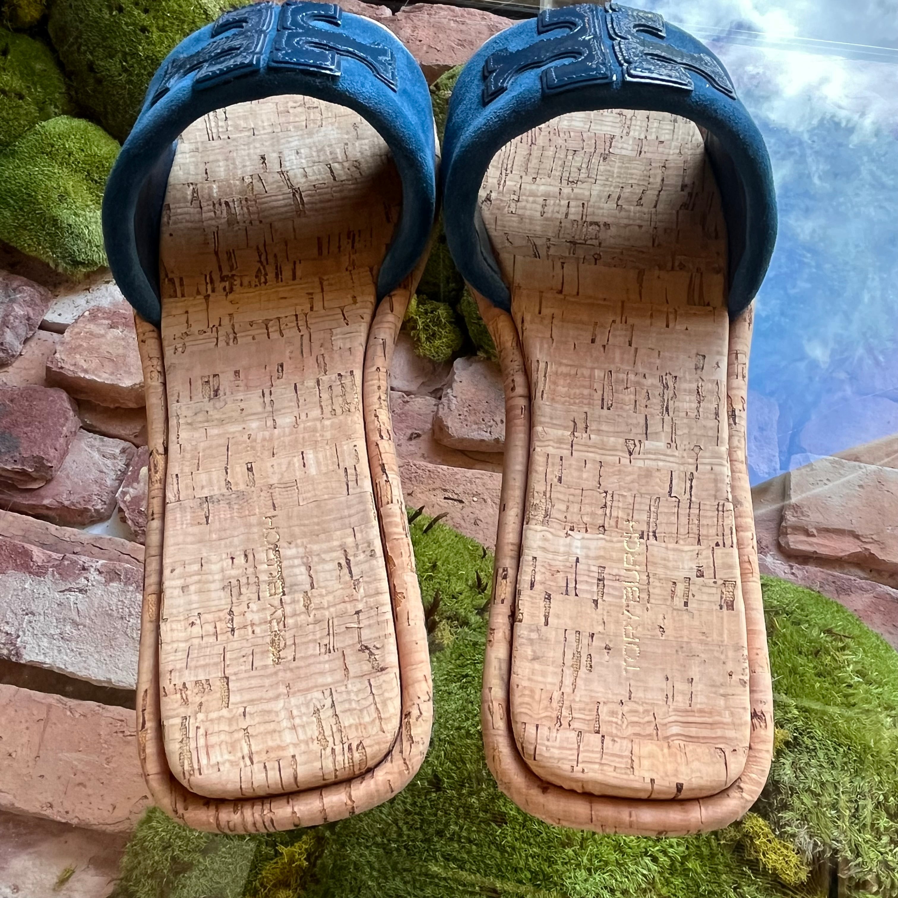 TORY BURCH Blue Cork Slide Sandals size 40.5 ( US 10.5)