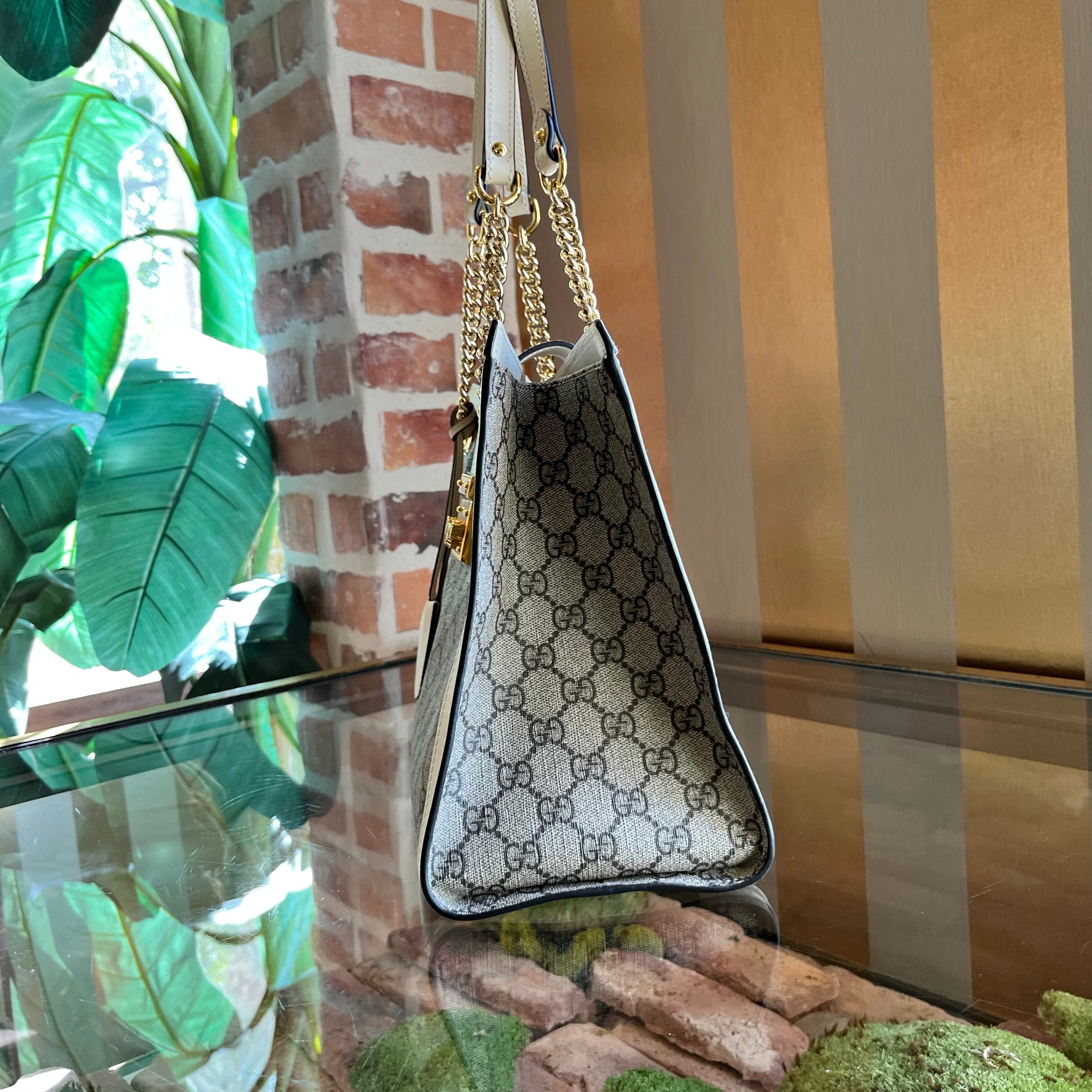 GUCCI Padlock Medium Cream GG Supreme Canvas Tote Bag