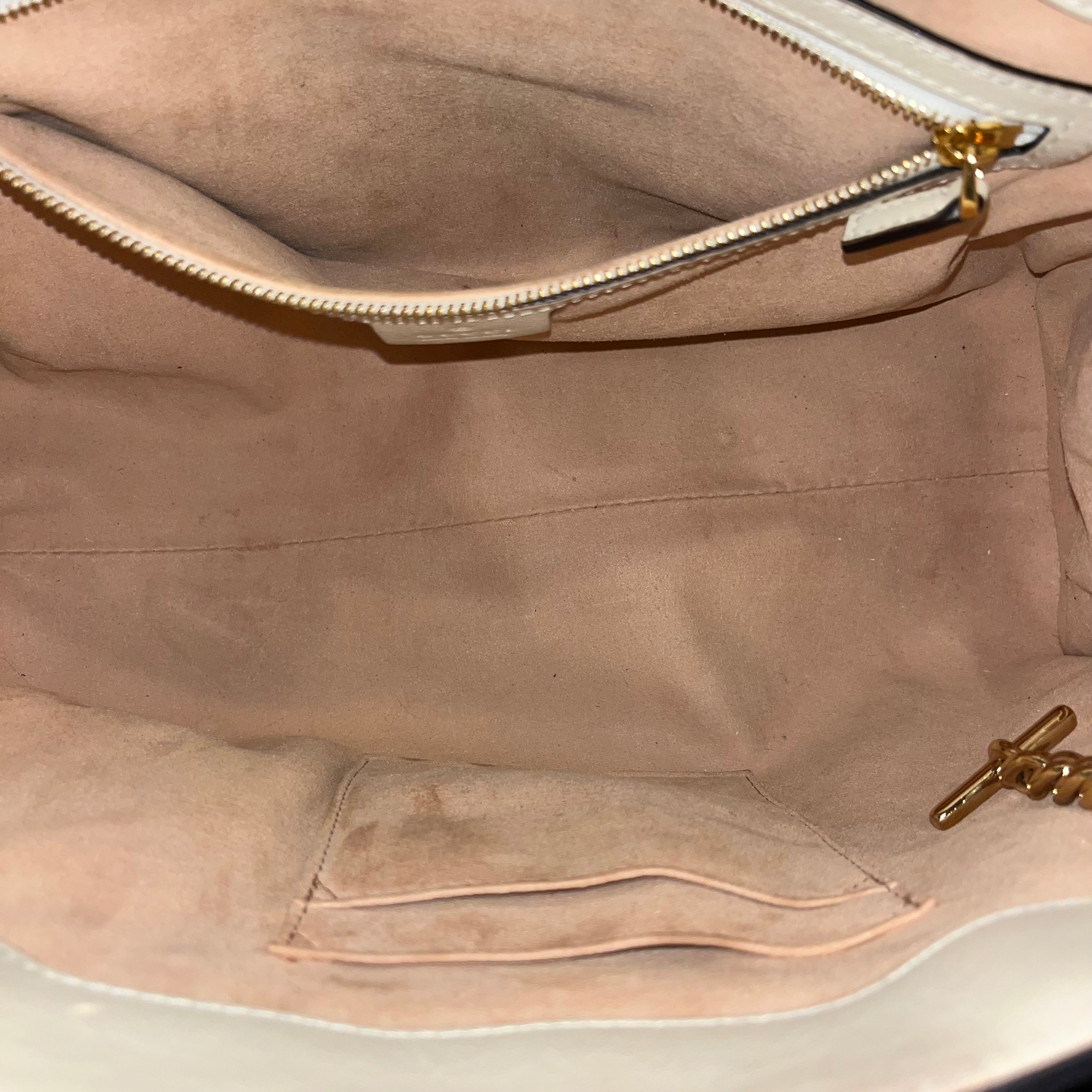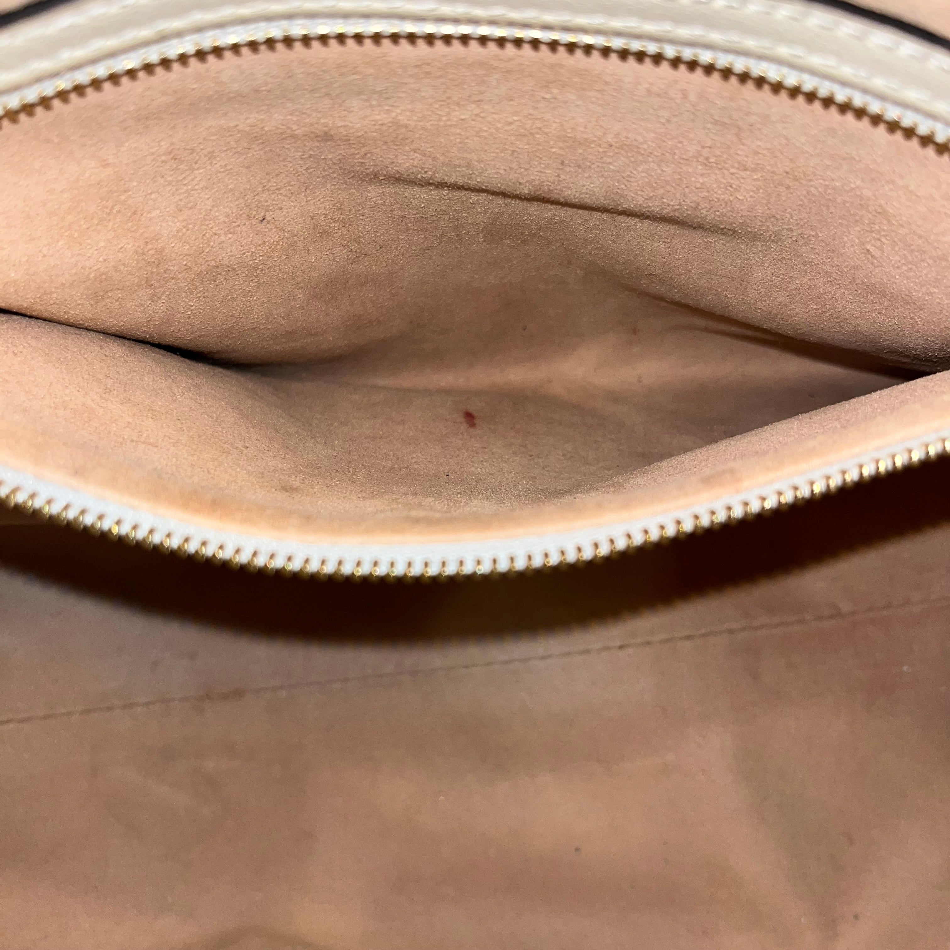 • Exterior: The exterior is gorgeous and supple, with light rubbing, small mark, gentle darkening and faint scratches confined primarily to the leather. Paired with clean, vibrant coated canvas, the bag presents in very good overall condition.